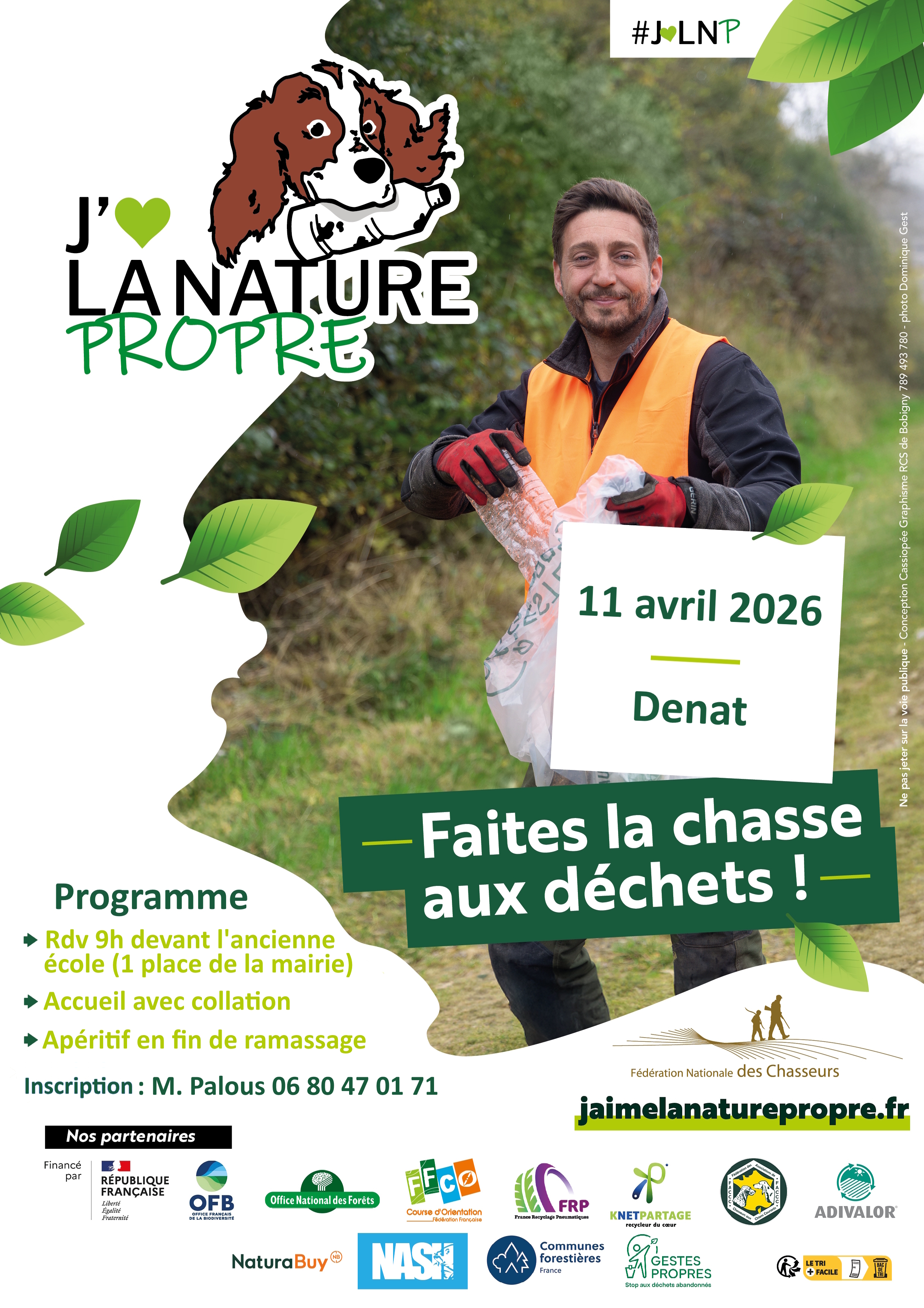 L'association communale de chasse de Dénat vous propose une matinée de RAMASSAGE DES DÉCHETS.
