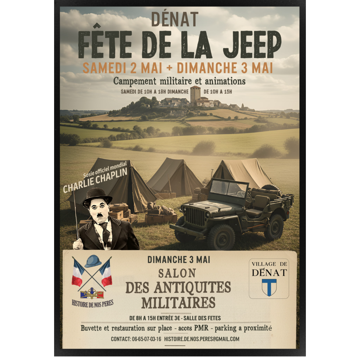 Au programme : Fête de la Jeep, Campement militaire, Sosie mondial de Charlie Chaplin, Salon des antiquités militaires...